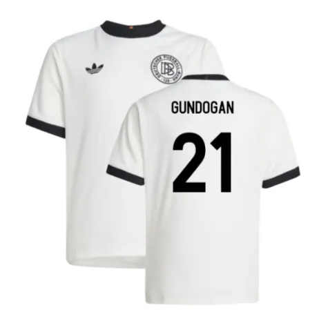 Official Ilkay Gundogan football shirt. This is the NEW Germany 125th Anniversary Shirt - Kids which is manufactured by Adidas and is available in all Childrens sizes.