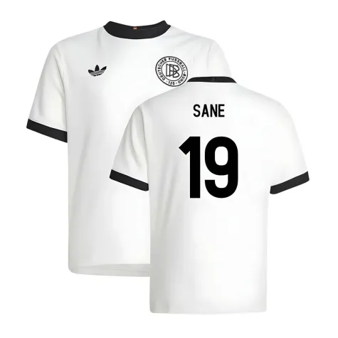 Official Leroy Sane football shirt. This is the NEW Germany 125th Anniversary Shirt - Kids which is manufactured by Adidas and is available in all Childrens sizes.