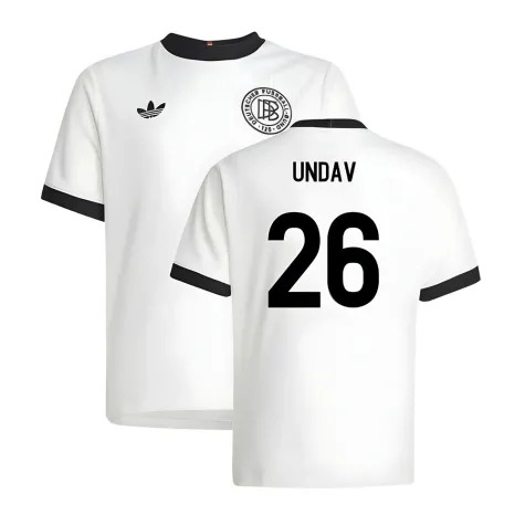 Official Deniz Undav football shirt. This is the NEW Germany 125th Anniversary Shirt - Kids which is manufactured by Adidas and is available in all Childrens sizes.