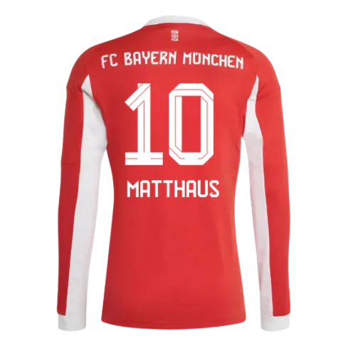 Official Lothar Matthaus football shirt. This is the NEW Bayern Munich Long Sleeve Home Shirt for the 2025-2026 season which is manufactured by Adidas and is available in all Adult sizes.