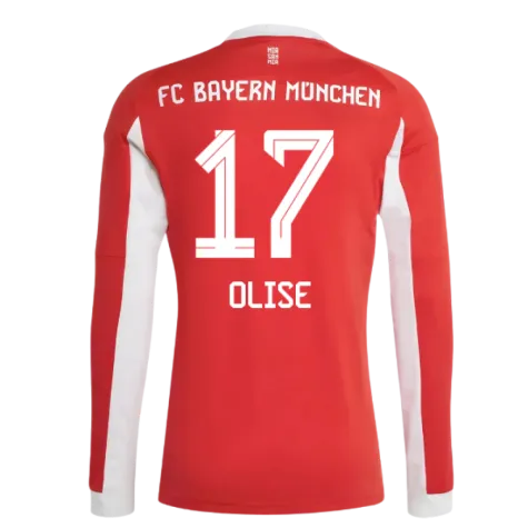 Official Michael Olise football shirt. This is the NEW Bayern Munich Long Sleeve Home Shirt for the 2025-2026 season which is manufactured by Adidas and is available in all Adult sizes.