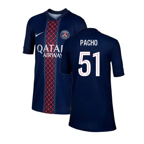 Official Willian Pacho football shirt. This is the NEW PSG Paris Saint Germain Home Shirt (Kids) for the 2025-2026 season which is manufactured by Nike and is available in all Childrens sizes.