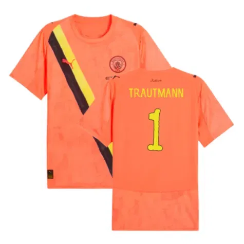 Official Bert Trautmann football shirt. This is the NEW  KIDSUPER x Manchester City CWC Shirt (Neon Sun) for the 2025-2026 season which is manufactured by Puma and is available in all Adult sizes.