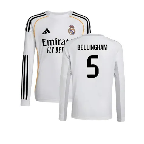 2025-2026 Real Madrid Long Sleeve Home Shirt (Kids) (Bellingham 5)