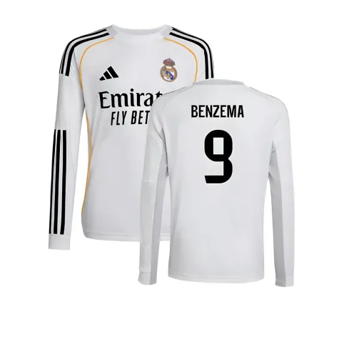 2025-2026 Real Madrid Long Sleeve Home Shirt (Kids) (Benzema 9)