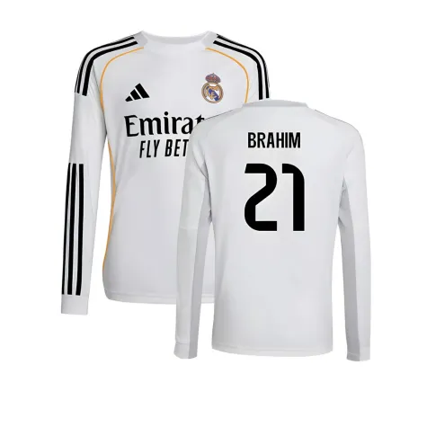 2025-2026 Real Madrid Long Sleeve Home Shirt (Kids) (Brahim 21)