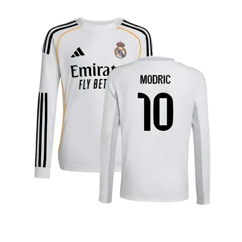 2025-2026 Real Madrid Long Sleeve Home Shirt (Kids) (Modric 10)