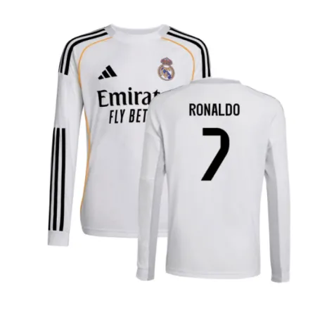 2025-2026 Real Madrid Long Sleeve Home Shirt (Kids) (Ronaldo 7)