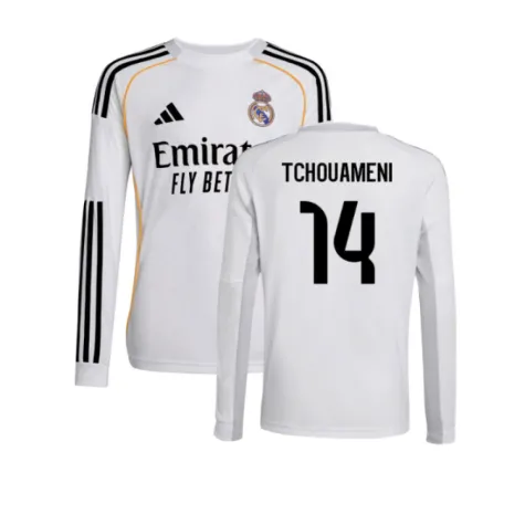 2025-2026 Real Madrid Long Sleeve Home Shirt (Kids) (Tchouameni 14)
