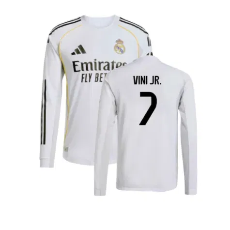 2025-2026 Real Madrid Authentic Long Sleeve Home Shirt (Vini Jr. 7)