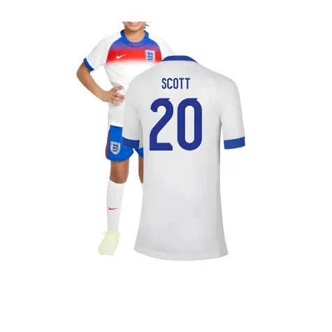 Official Jill Scott football shirt. This is the NEW England Womens Home Mini Kit for the 2025-2026 season which is manufactured by Nike and is available in all Childrens sizes.