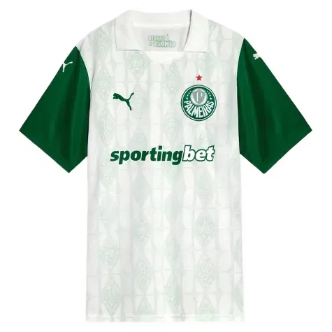Embrace the spirit of Verdo on foreign turf with the official Palmeiras 2025 Away Shirt, designed by Puma. A stunning blend of subtle style and club heritage makes this jersey a standout both on the pitch and in the stands.