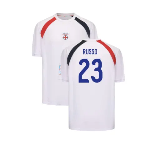 Official Alessia Russo football shirt. This is the NEW England T-Shirt for the 2025-2026 season which is manufactured by UEFA and is available in all Adult sizes.