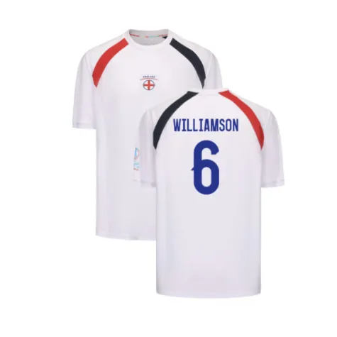 Official Leah Williamson football shirt. This is the NEW England T-Shirt for the 2025-2026 season which is manufactured by UEFA and is available in all Adult sizes.