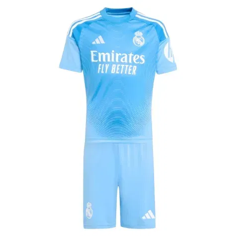 The bold royal?blue colourway mirrors the elite look of Real Madrids goalkeepers. Crafted with moisture?wicking AEROREADY fabric, the jersey, shorts, and socks help young players stay dry and focused during every save, dive, and distribution.