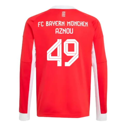 Official Adam Aznou football shirt. This is the NEW Bayern Munich Long Sleeve Home Shirt (Kids) for the 2025-2026 season which is manufactured by Adidas and is available in all Childrens sizes.