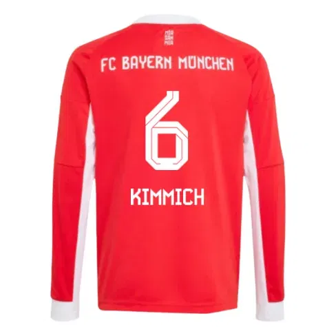 Official Joshua Kimmich football shirt. This is the NEW Bayern Munich Long Sleeve Home Shirt (Kids) for the 2025-2026 season which is manufactured by Adidas and is available in all Childrens sizes.