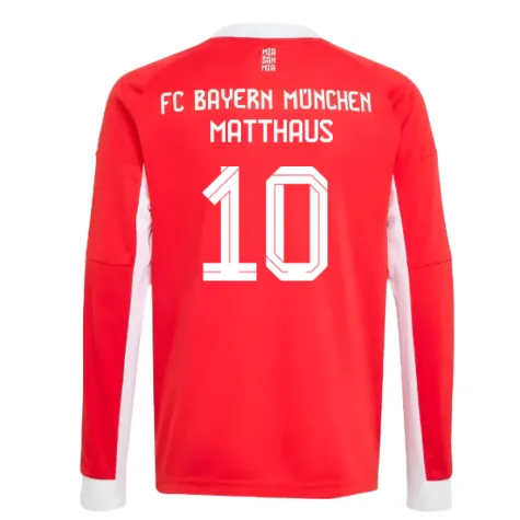 Official Lothar Matthaus football shirt. This is the NEW Bayern Munich Long Sleeve Home Shirt (Kids) for the 2025-2026 season which is manufactured by Adidas and is available in all Childrens sizes.