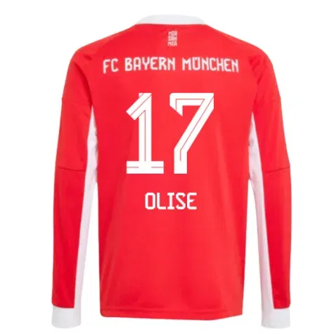 Official Michael Olise football shirt. This is the NEW Bayern Munich Long Sleeve Home Shirt (Kids) for the 2025-2026 season which is manufactured by Adidas and is available in all Childrens sizes.
