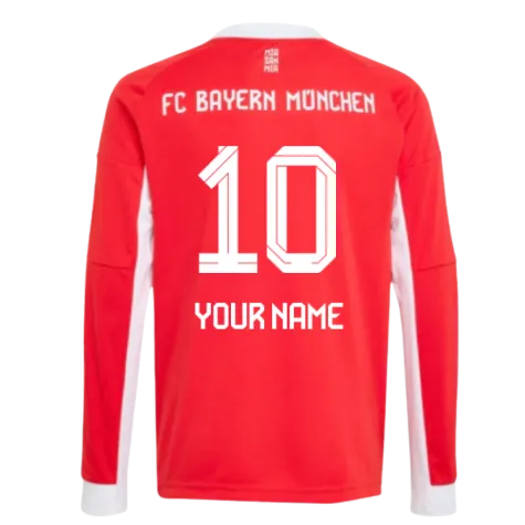 Official Your Name football shirt. This is the NEW Bayern Munich Long Sleeve Home Shirt (Kids) for the 2025-2026 season which is manufactured by Adidas and is available in all Childrens sizes.