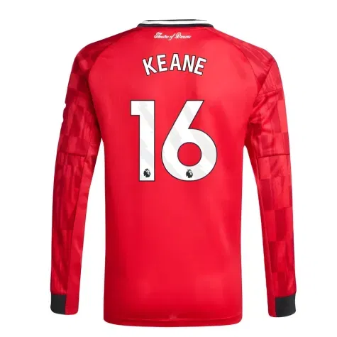 Official Roy Keane football shirt. This is the NEW Man Utd Long Sleeve Home Shirt (Kids) for the 2025-2026 season which is manufactured by Adidas and is available in all Childrens sizes.