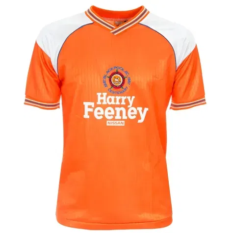 Celebrate a century of football heritage with the 19871988 Blackpool Harry Feeney Centenary Shirt a must-have for Seasiders fans and retro football kit collectors alike. Originally worn during Blackpool FCs 100th anniversary season, this iconic shirt pays tribute to club legend Harry Feeney, blending nostalgia with striking 80s style.