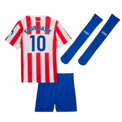 Official Your Name football shirt. This is the NEW Atletico Madrid Home Little Boys Mini Kit for the 2025-2026 season which is manufactured by Nike and is available in all Childrens sizes.