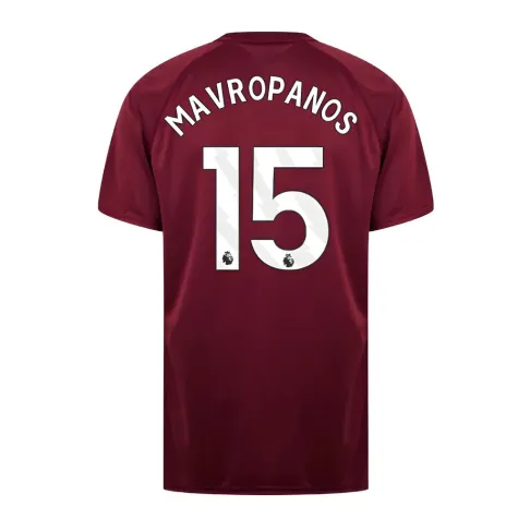 Official Konstantinos Mavropanos football shirt. This is the NEW West Ham United Poly T-Shirt (Claret/Blue) for the 2025-2026 season which is manufactured by Source Lab and is available in all Adult sizes.