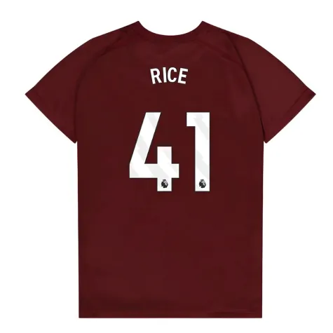 Official Declan Rice football shirt. This is the NEW West Ham United Poly T-Shirt (Claret/Blue) - Kids which is manufactured by Source Lab and is available in all Childrens sizes.