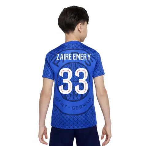 Official Warren Zare Emery football shirt. This is the NEW PSG Academy Pro Home Pre Match Shirt (Royal) - Kids for the 2025-2026 season which is manufactured by Nike and is available in all Childrens sizes.