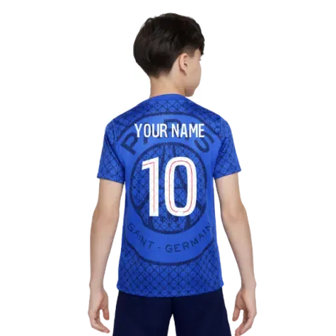 Official Your Name football shirt. This is the NEW PSG Academy Pro Home Pre Match Shirt (Royal) - Kids for the 2025-2026 season which is manufactured by Nike and is available in all Childrens sizes.