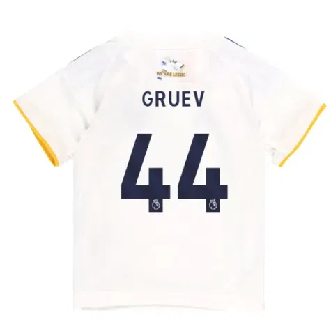 Official Ilia Gruev football shirt. This is the NEW Leeds United Home Baby Kit for the 2025-2026 season which is manufactured by Adidas and is available in all Childrens sizes.