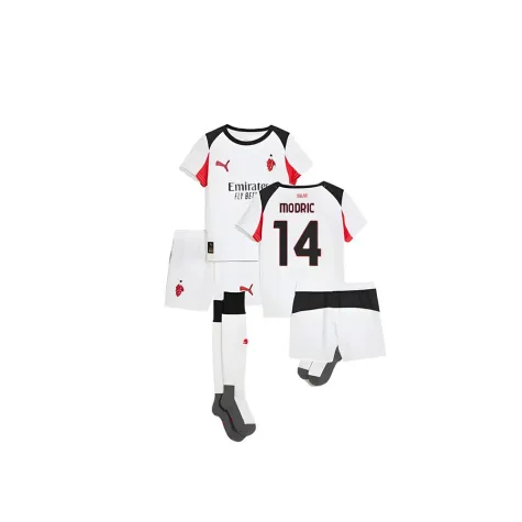 Official Luka Modric football shirt. This is the NEW AC Milan Away Mini Kit for the 2025-2026 season which is manufactured by Puma and is available in all Childrens sizes.