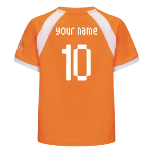 Official Your Name football shirt. This is the NEW 2025 Netherlands WEC Poly T-shirt (Orange) - Kids which is manufactured by UEFA and is available in all Childrens sizes.