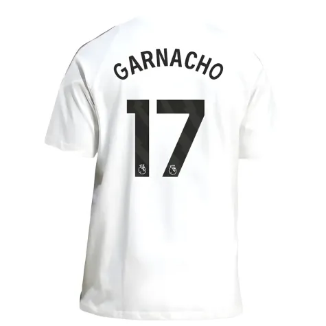 Official Alejandro Garnacho football shirt. This is the NEW Man Utd Training Tee (White) for the 2025-2026 season which is manufactured by Adidas and is available in all Adult sizes.