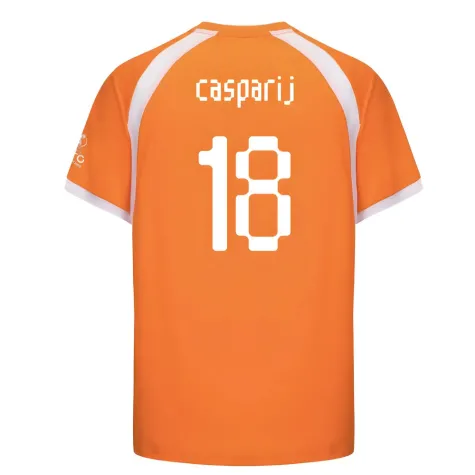 Official Kerstin Casparij football shirt. This is the NEW 2025 Netherlands WEC Poly T-shirt (Orange) - Mens which is manufactured by UEFA and is available in all Adult sizes.