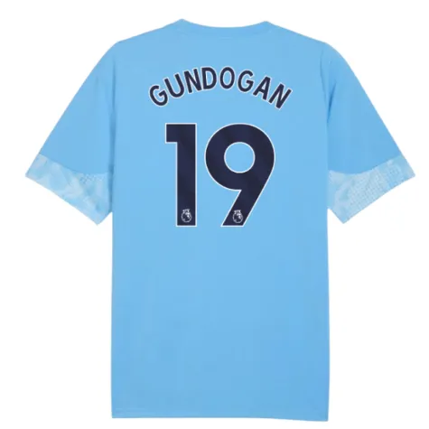 Official Ilkay Gundogan football shirt. This is the NEW Man City Training Jersey (Light Blue) - Kids for the 2025-2026 season which is manufactured by Puma and is available in all Childrens sizes.