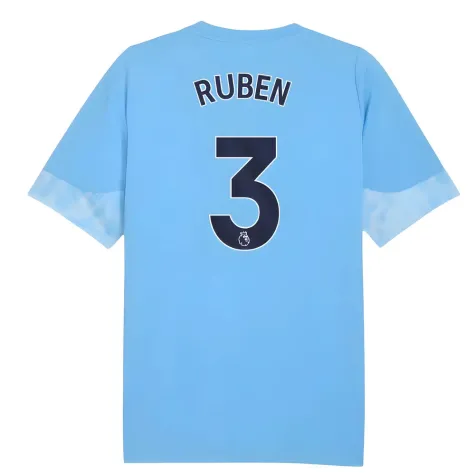 Official Ruben Dias football shirt. This is the NEW Man City Training Jersey (Light Blue) - Kids for the 2025-2026 season which is manufactured by Puma and is available in all Childrens sizes.