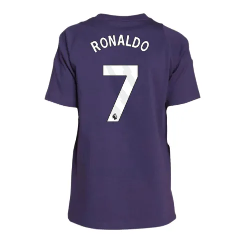 Official Cristiano Ronaldo football shirt. This is the NEW Man Utd Training Tee (Aurora Plum) - Kids for the 2025-2026 season which is manufactured by Adidas and is available in all Childrens sizes.