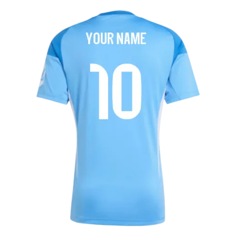 Official Your Name football shirt. This is the NEW Real Madrid Home Goalkeeper Shirt (Blue) for the 2025-2026 season which is manufactured by Adidas and is available in all Adult sizes.