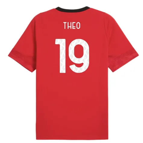 Official Theo Hernandez football shirt. This is the NEW AC Milan Training Jersey (Red) for the 2025-2026 season which is manufactured by Puma and is available in all Adult sizes.