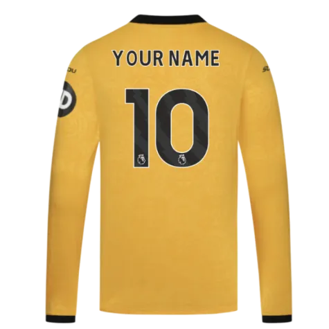 Official Your Name football shirt. This is the NEW Wolves Long Sleeve Home Shirt for the 2025-2026 season which is manufactured by Sudu and is available in all Adult sizes.
