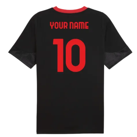 Official Your Name football shirt. This is the NEW AC Milan Training Jersey (Black) for the 2025-2026 season which is manufactured by Puma and is available in all Adult sizes.