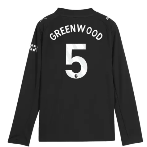 2025-2026 Man City Long Sleeve Away Shirt (Kids) (Greenwood 5)