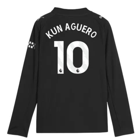 2025-2026 Man City Long Sleeve Away Shirt (Kids) (Kun Aguero 10)
