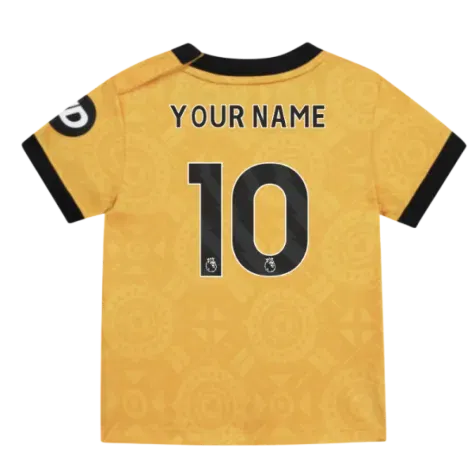 Official Your Name football shirt. This is the NEW Wolves Home Baby Kit for the 2025-2026 season which is manufactured by Sudu and is available in all Childrens sizes.