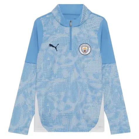 Give your young City fan the ultimate training experience with this official Manchester City quarter-zip training top. Crafted in the club's iconic light blue colourway, this premium training piece mirrors what the first team wear during their preparation sessions.