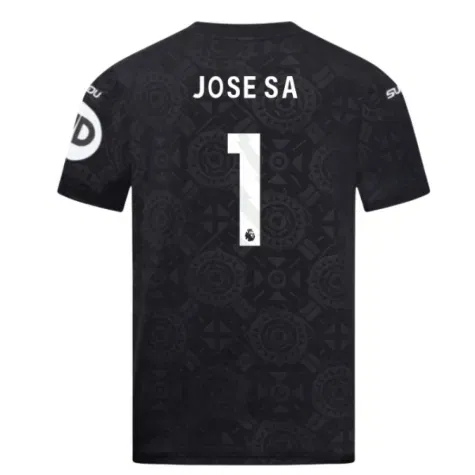 Official Jose Sa football shirt. This is the NEW Wolves Goalkeeper Home Shirt (Black) - Kids for the 2025-2026 season which is manufactured by Sudu and is available in all Childrens sizes.