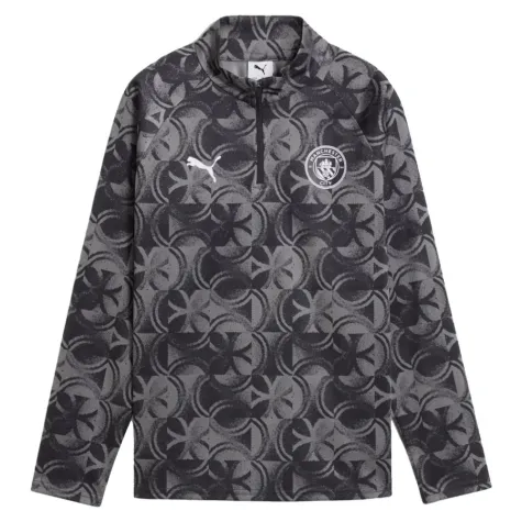 Get your young City fan match-ready with this official Manchester City 2025/26 warm-up top from Puma. Designed for the Citizens' rising stars, this sleek black quarter-zip top combines authentic club style with practical performance features.