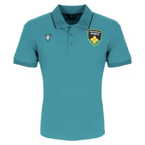 The classic polo design features the iconic Northampton Saints crest proudly embroidered on the chest, alongside Macron's signature styling details. The breathable cotton construction ensures all-day comfort, while the smart collar and button placket provide a polished look that transitions seamlessly from match day to casual occasions.